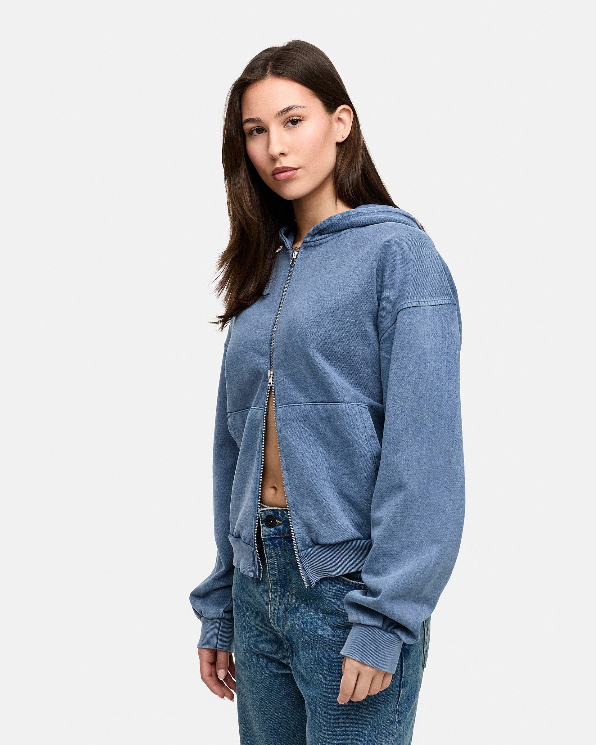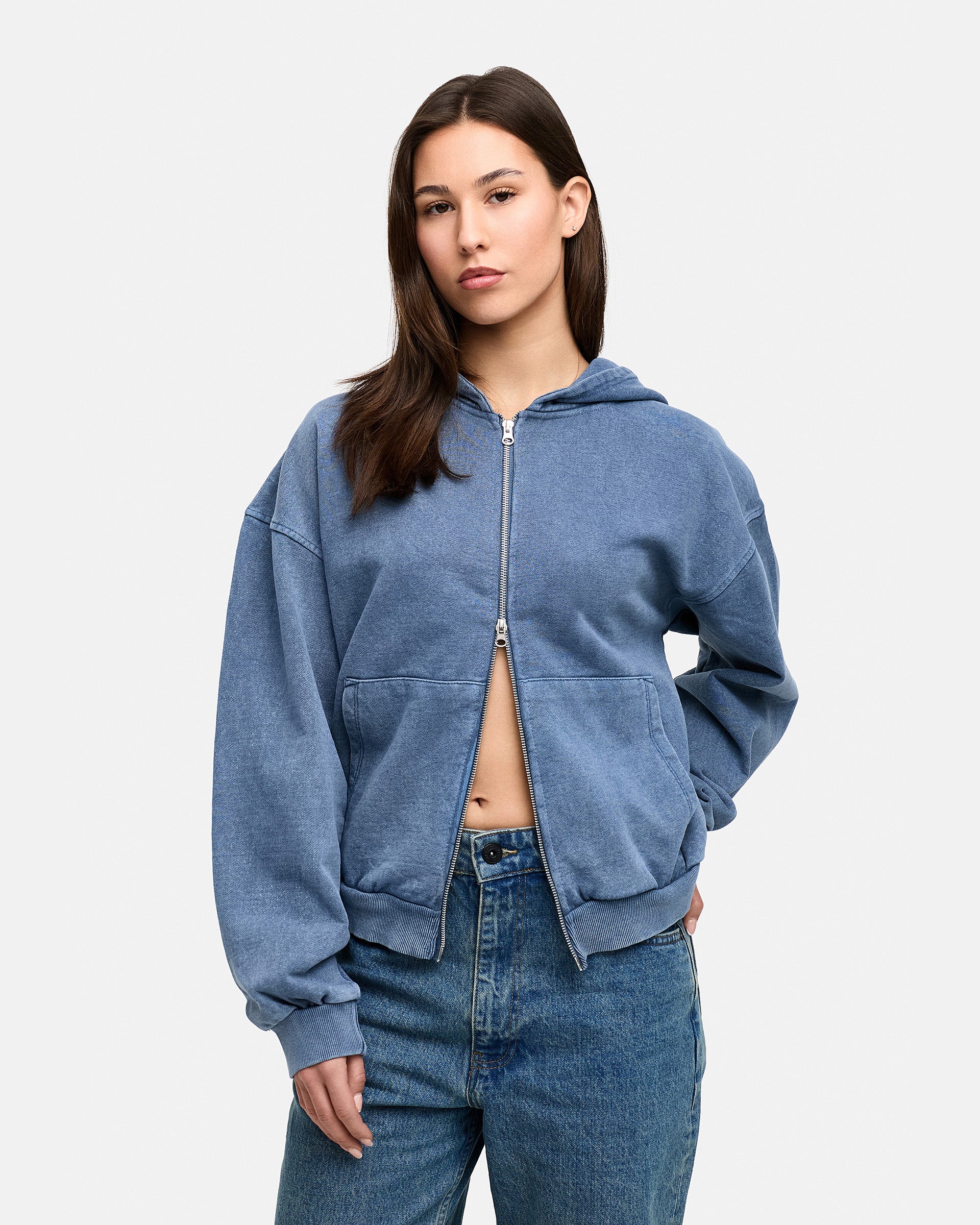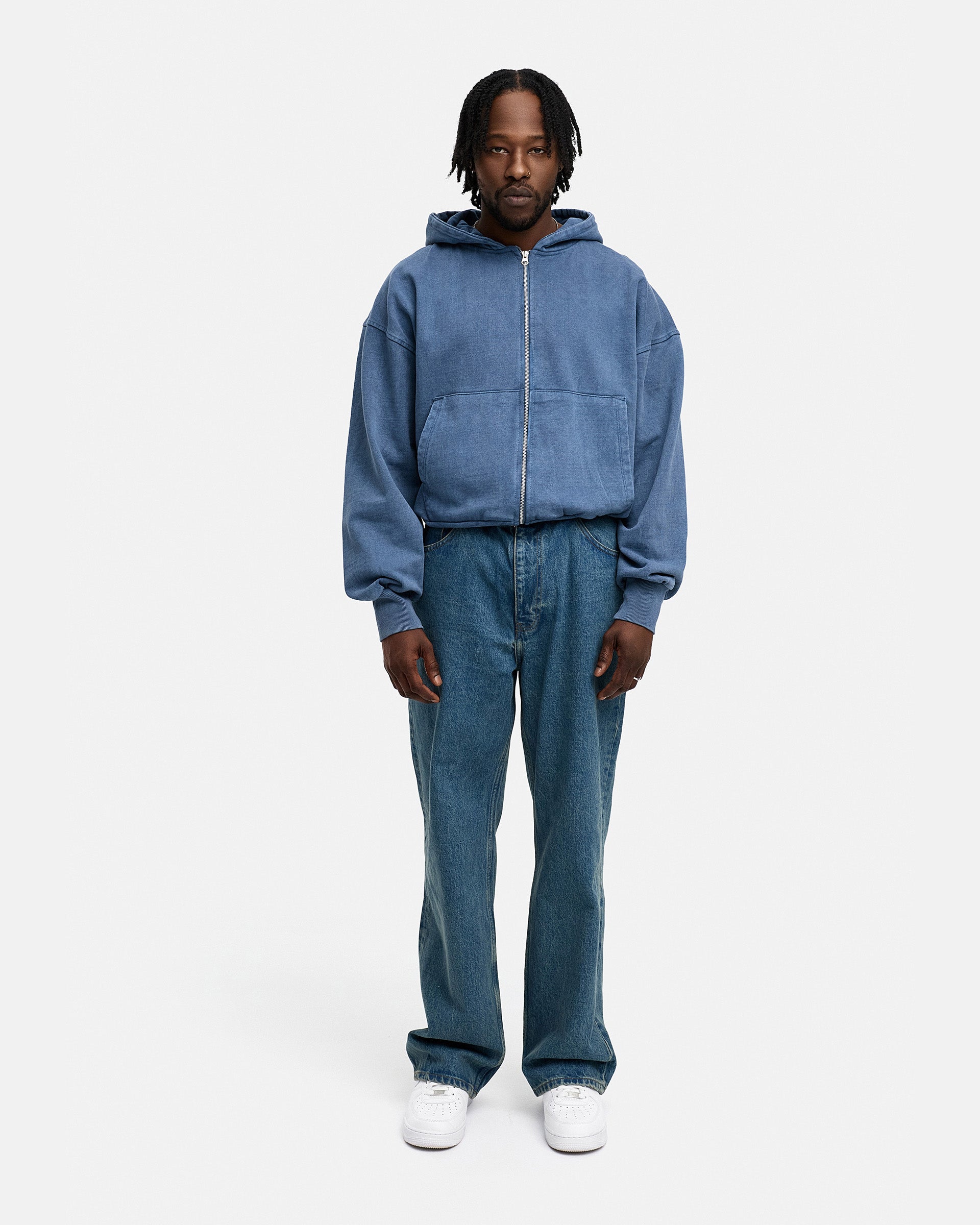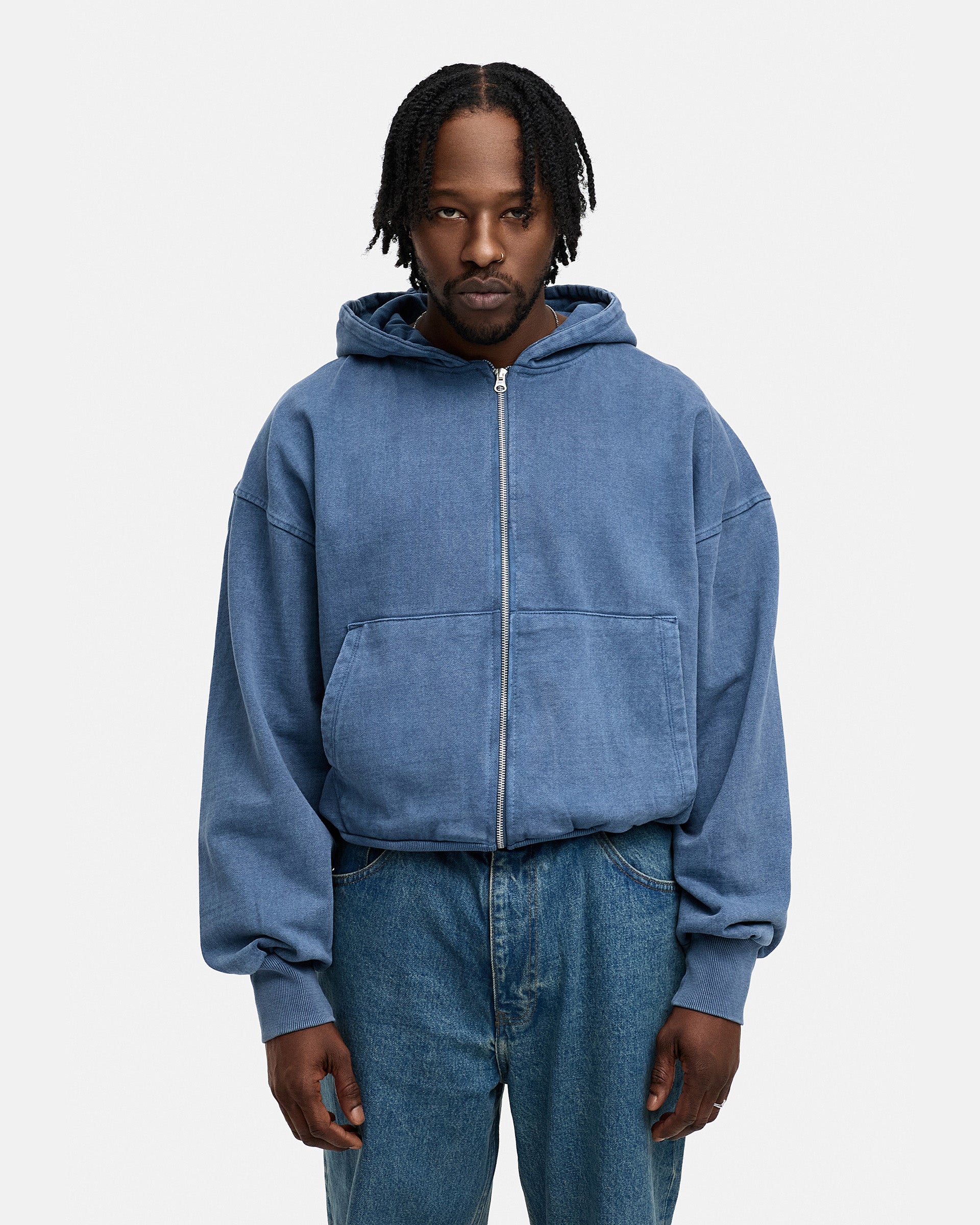 BLANK BOXY ZIP-HOODIE NAVY WASHED
