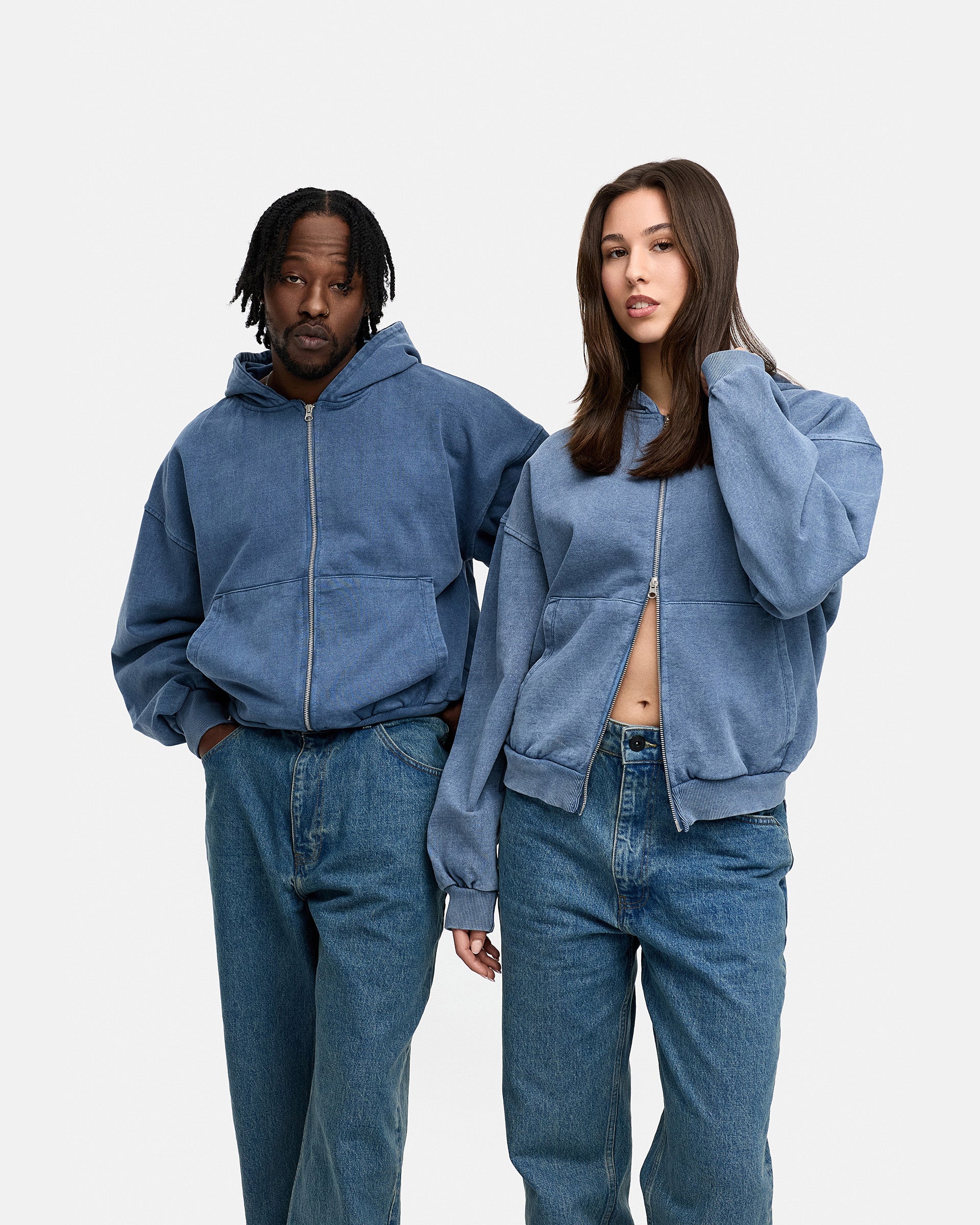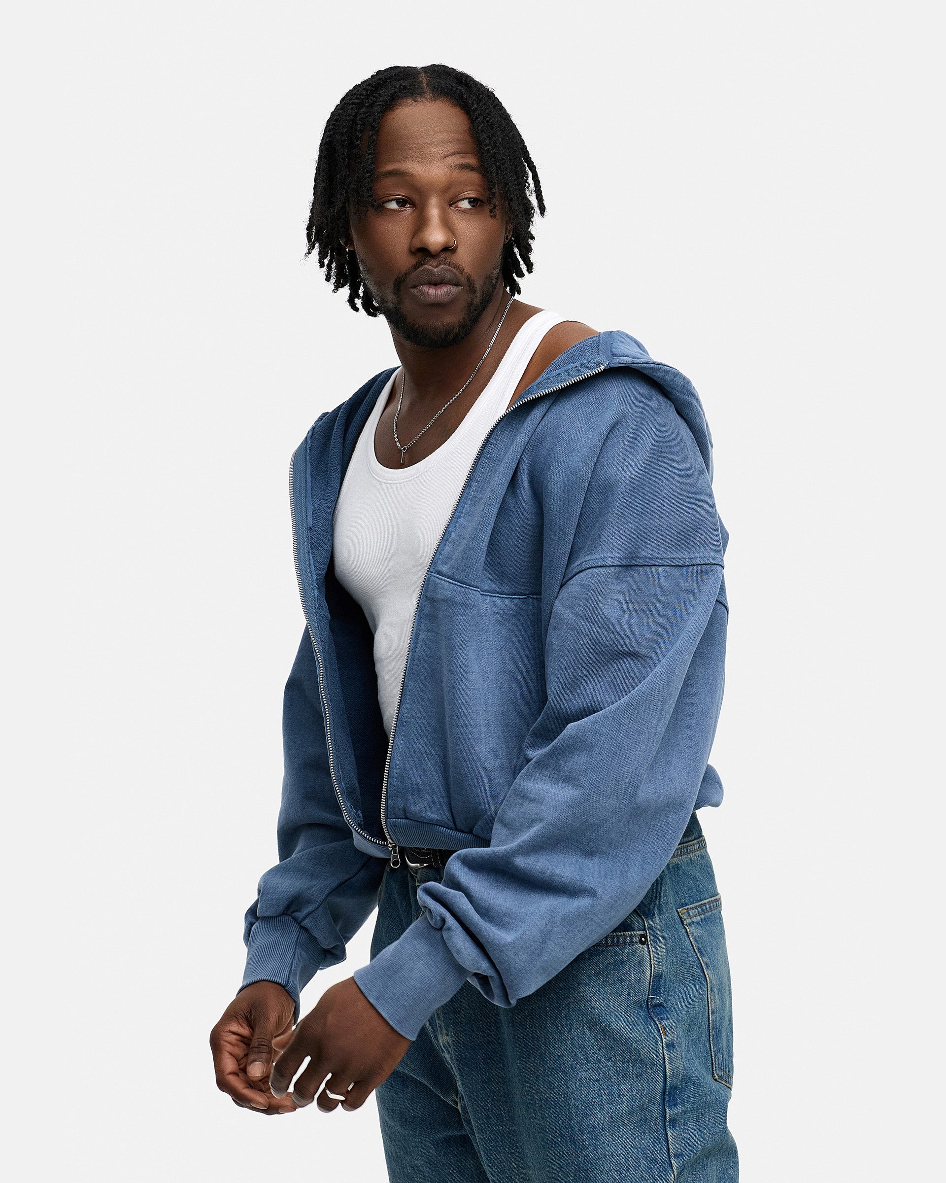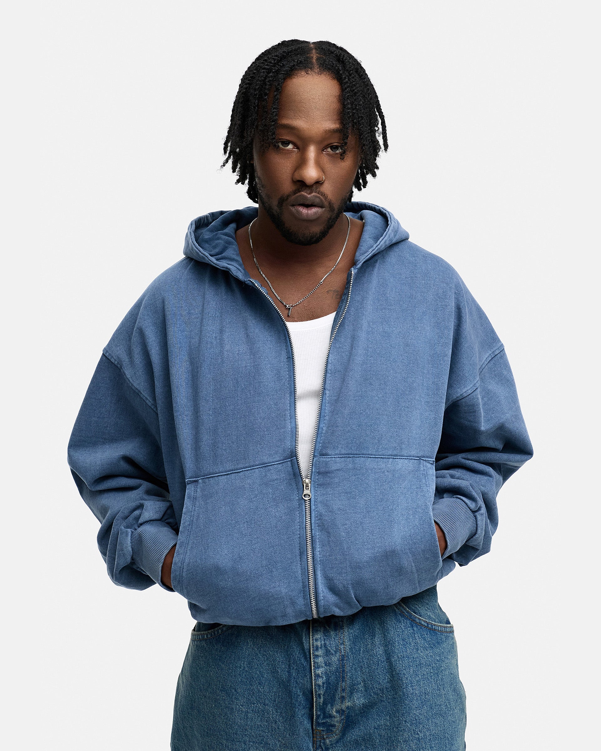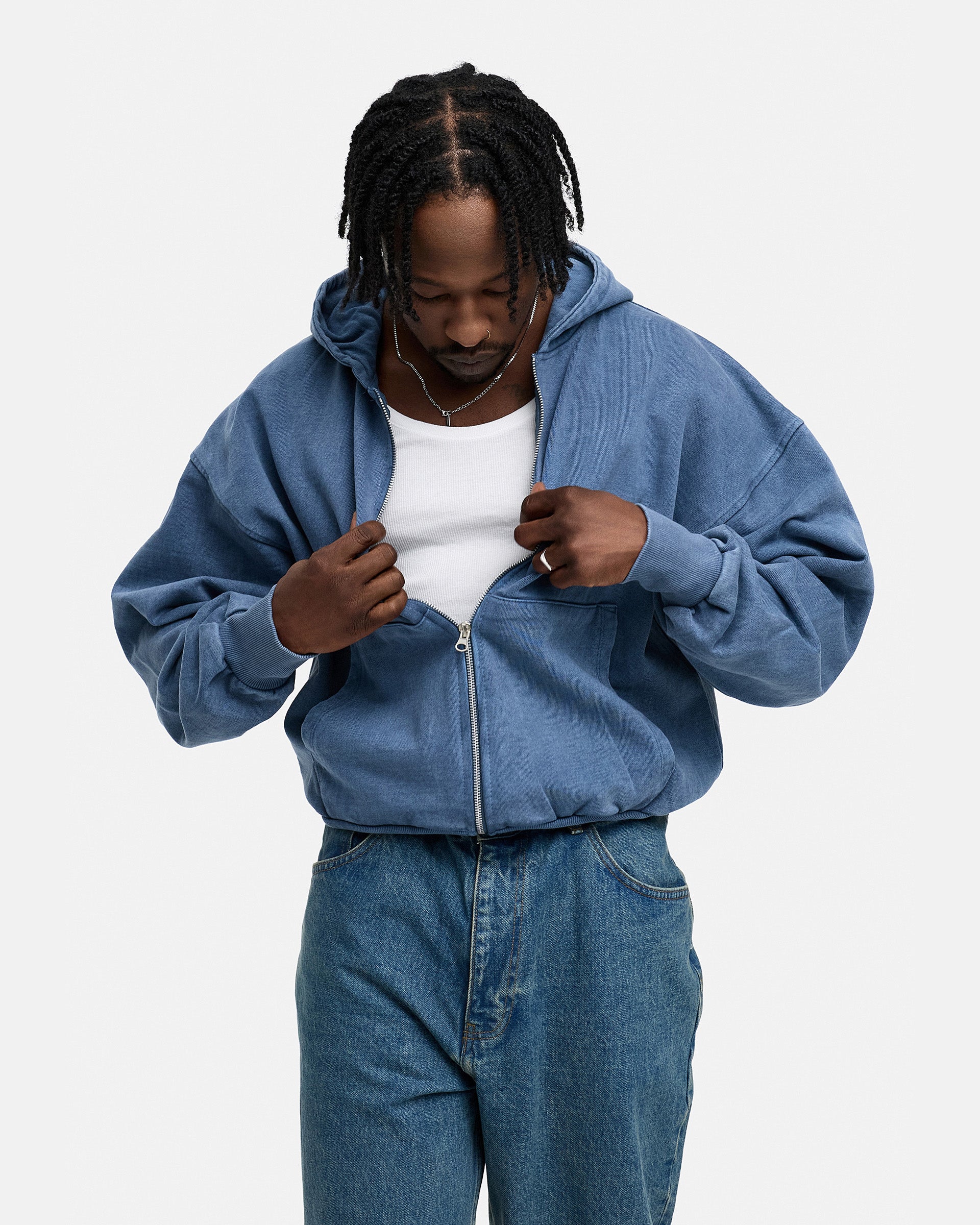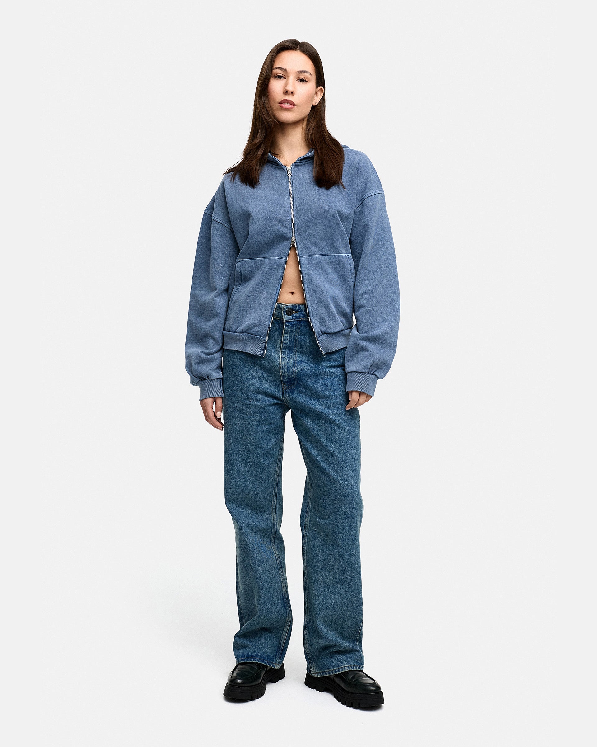 BLANK BOXY ZIP-HOODIE NAVY WASHED