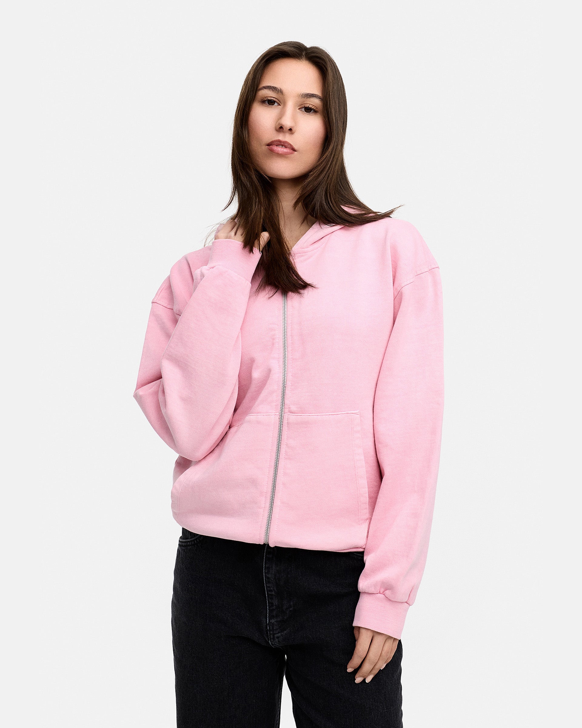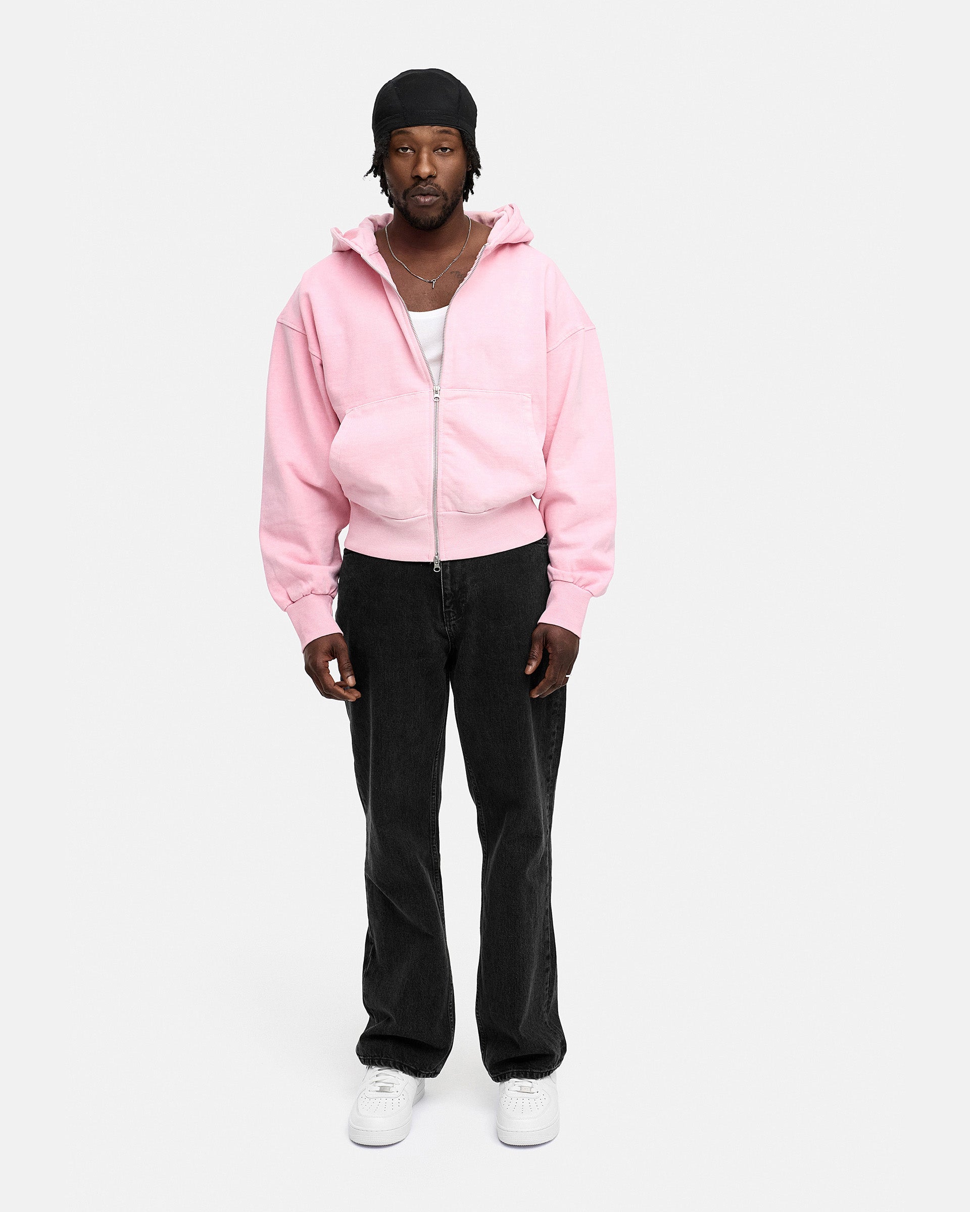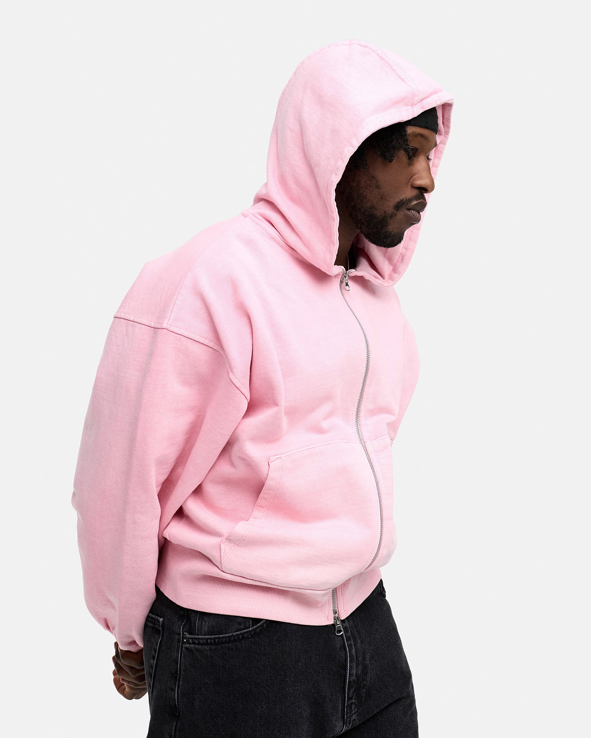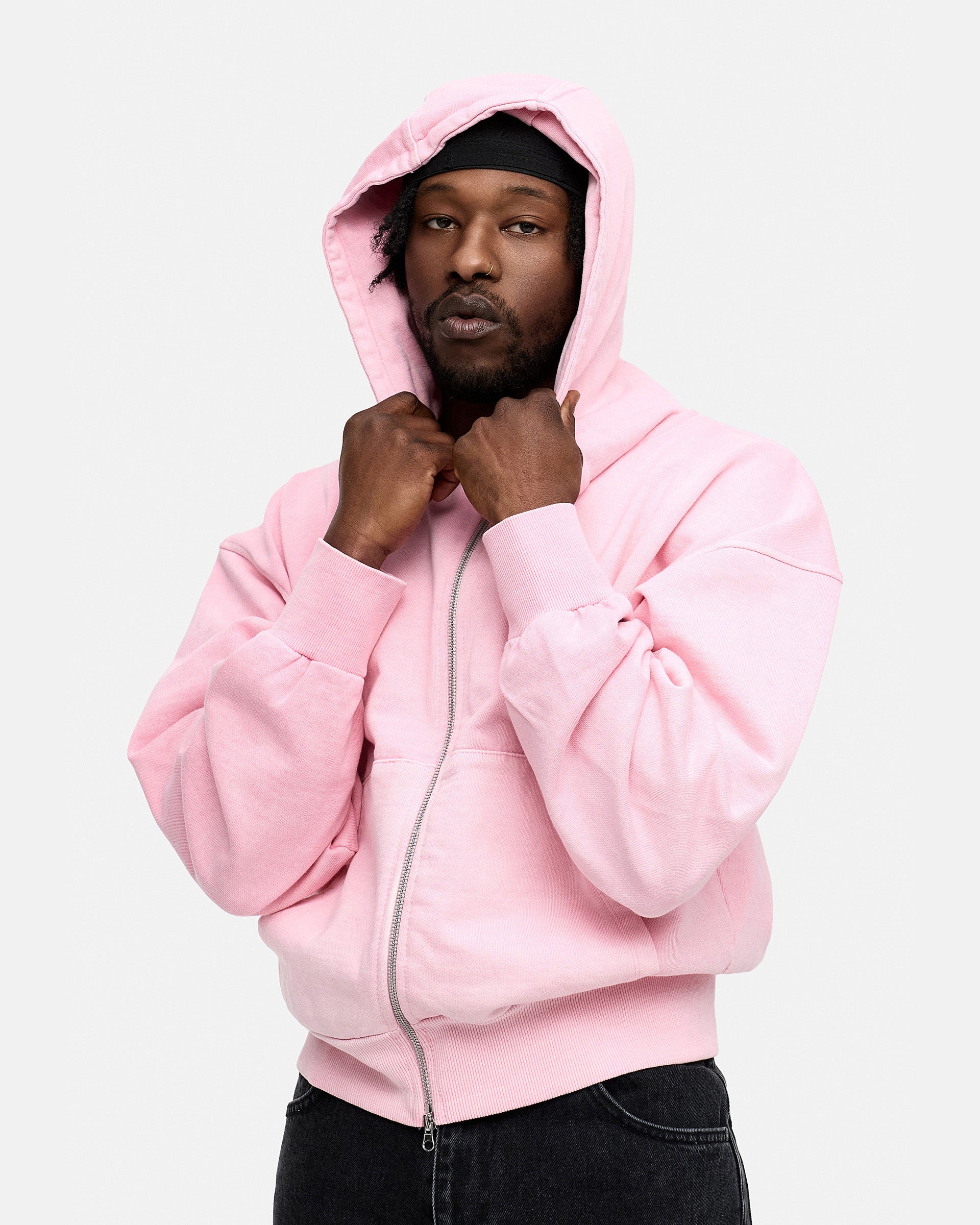 BLANK BOXY ZIP-HOODIE BUBBLE GUM WASHED