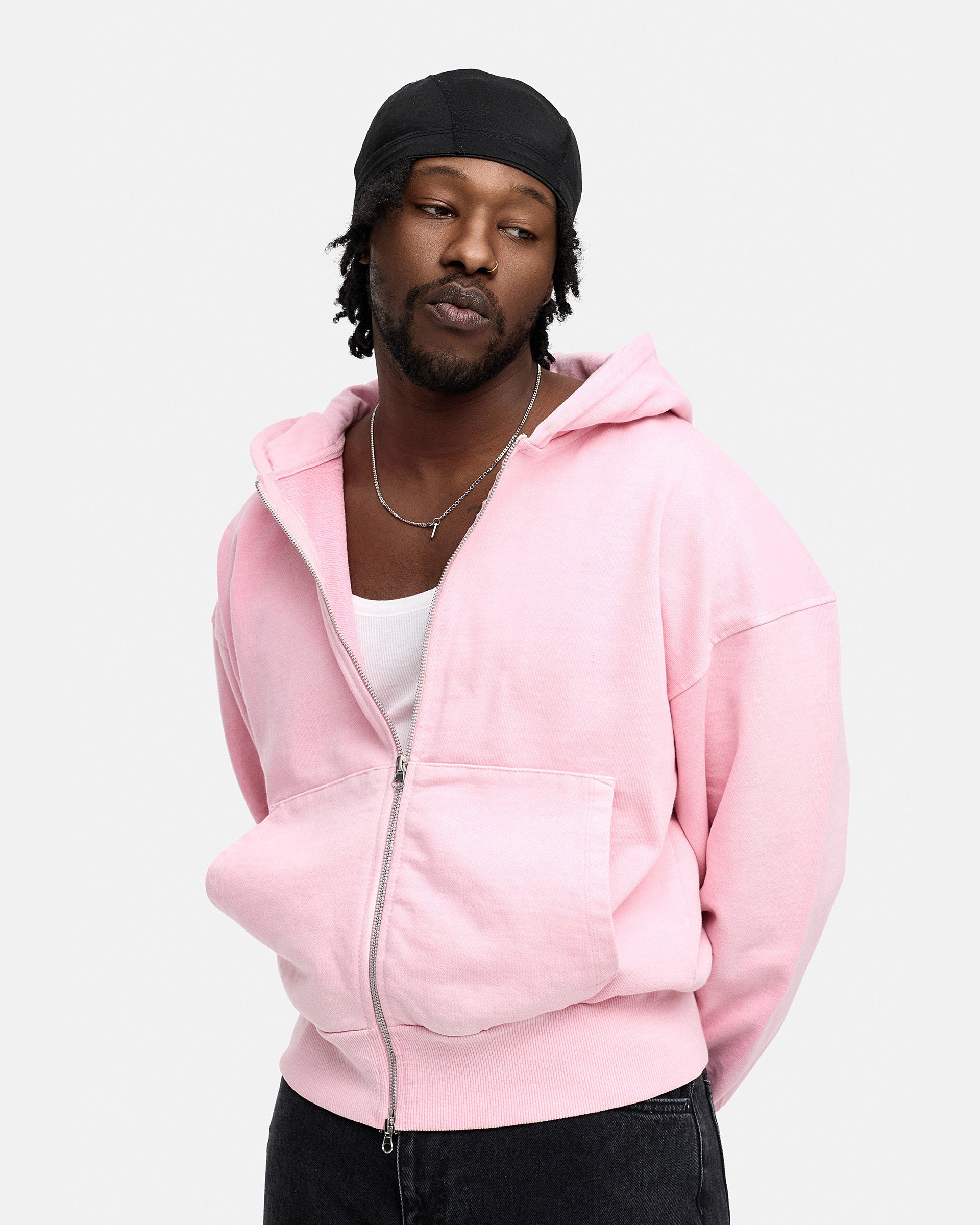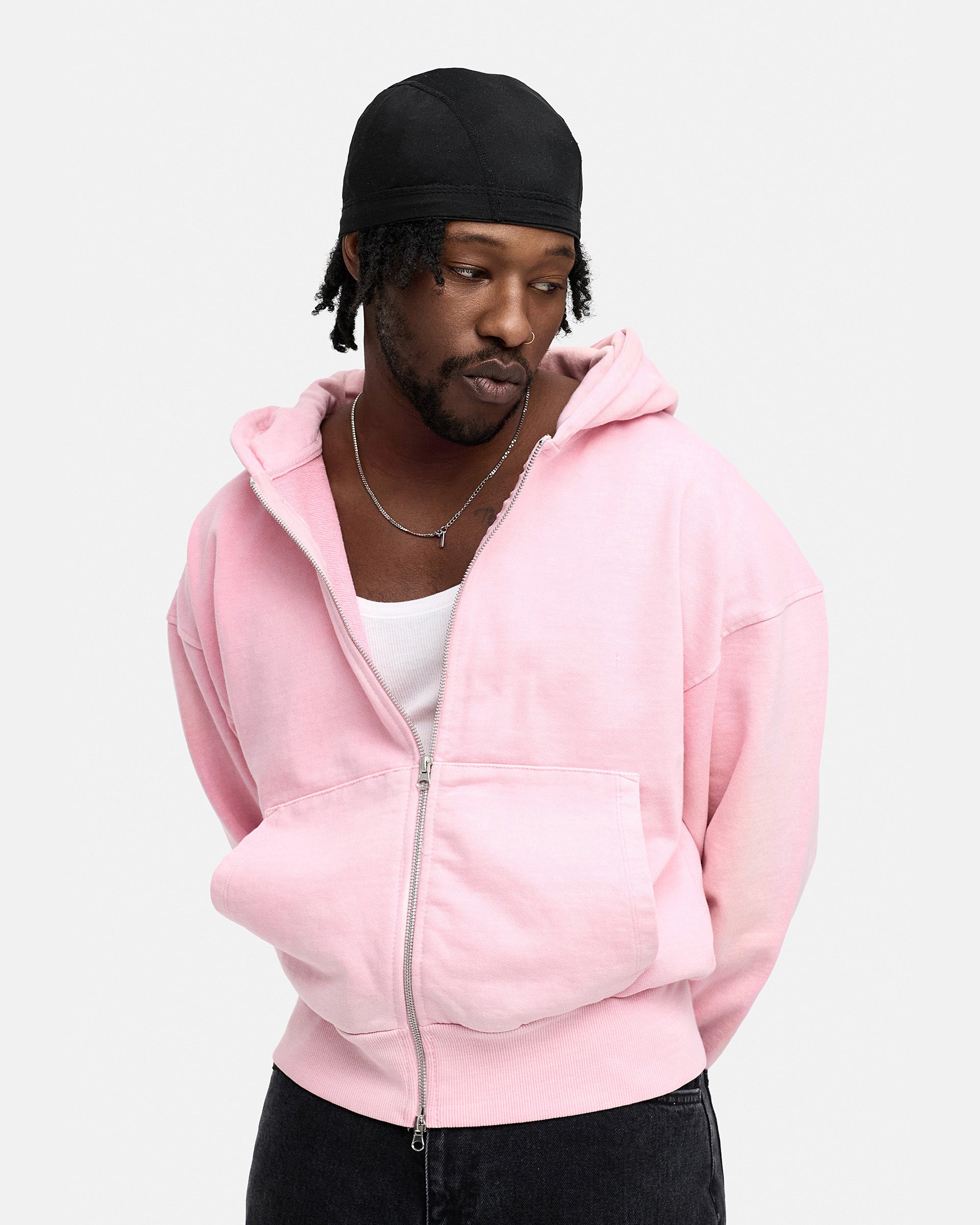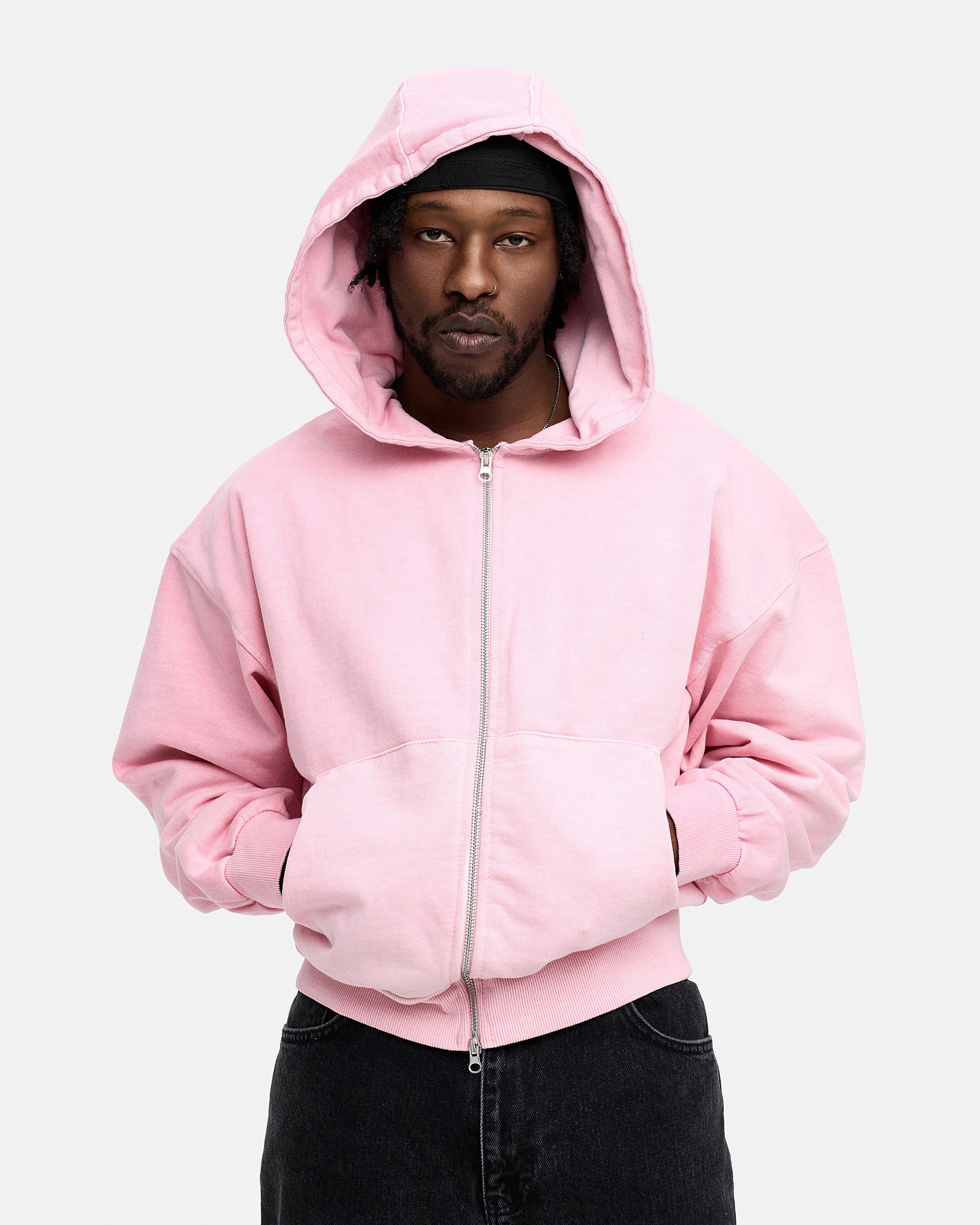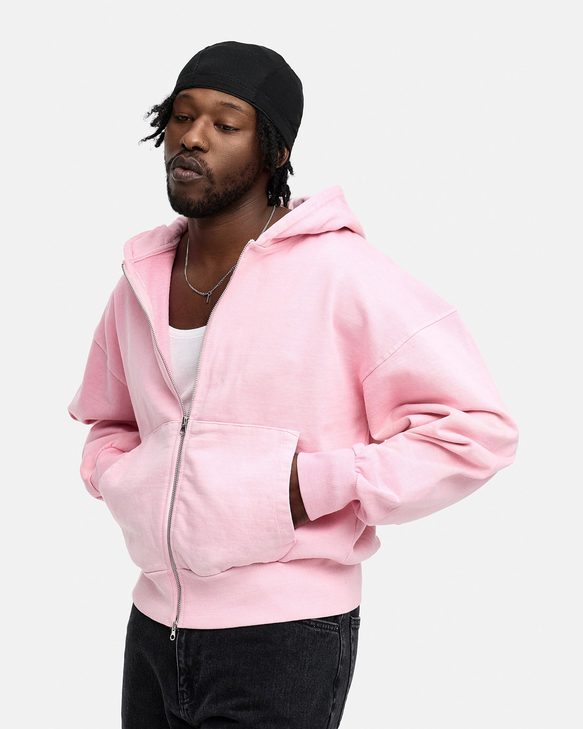 BLANK BOXY ZIP-HOODIE BUBBLE GUM WASHED