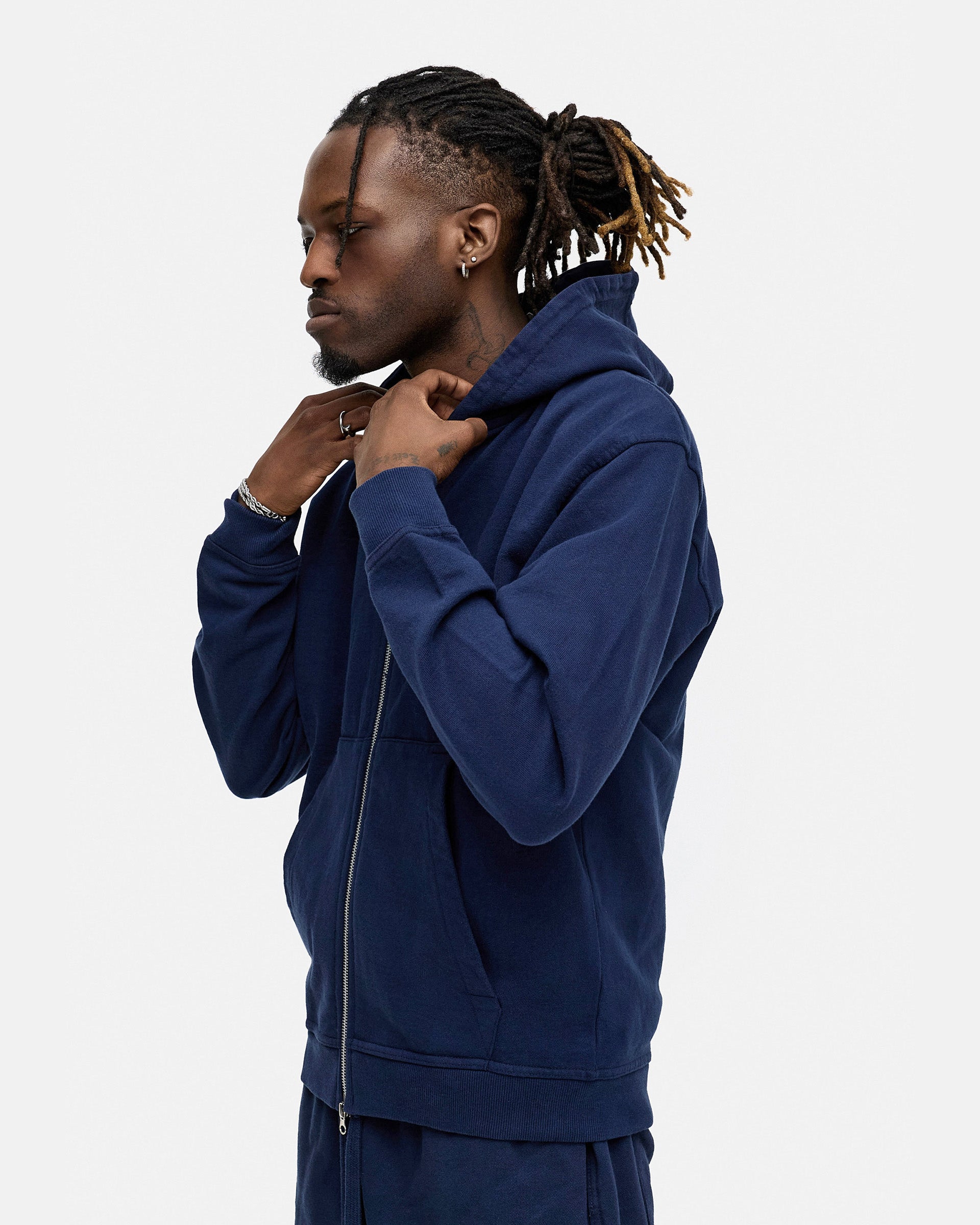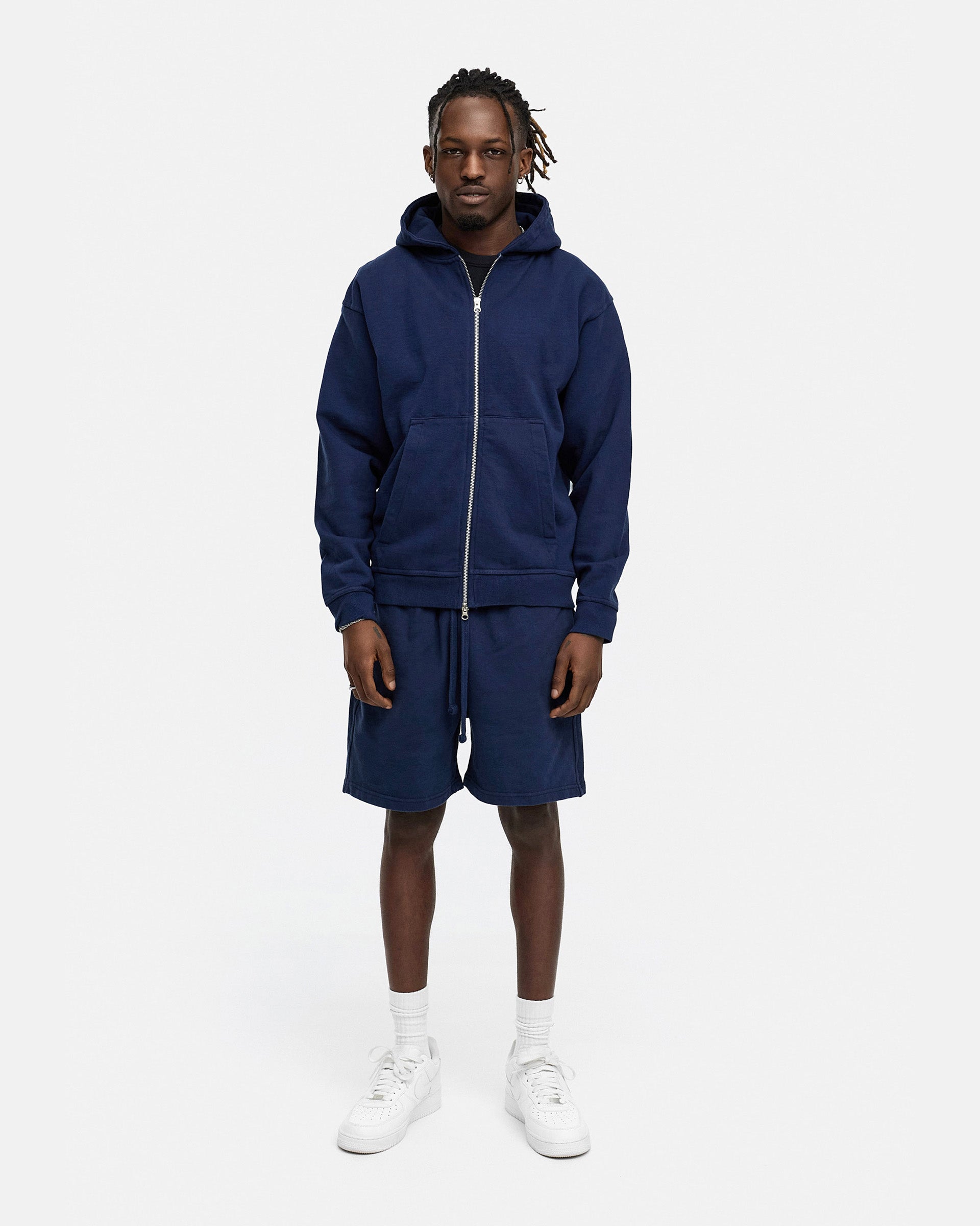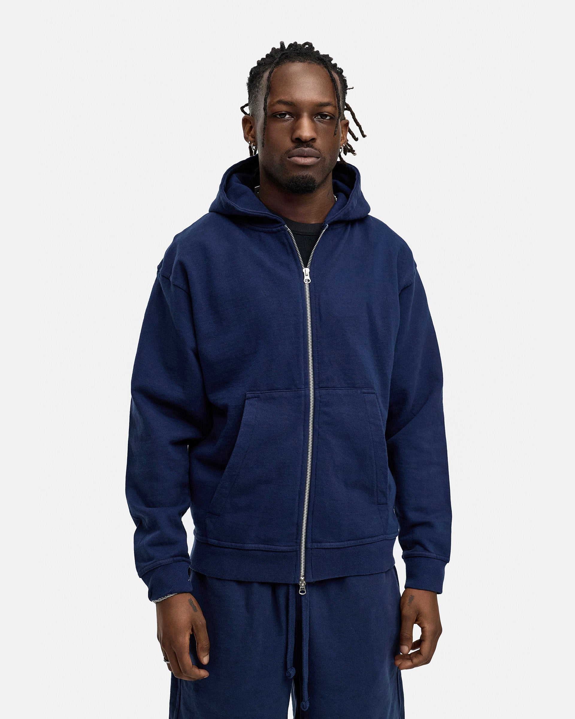 BLANK ZIP-HOODIE NAVY WASHED